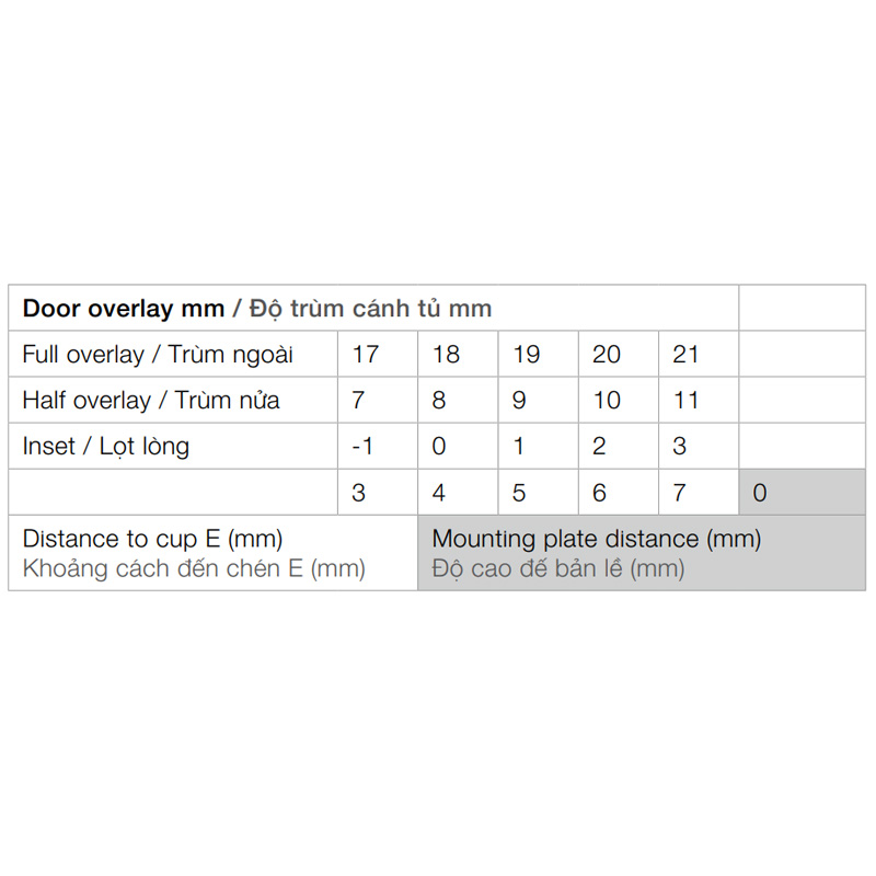 > Chiều sâu lỗ khoan: chén bản lề 12mm