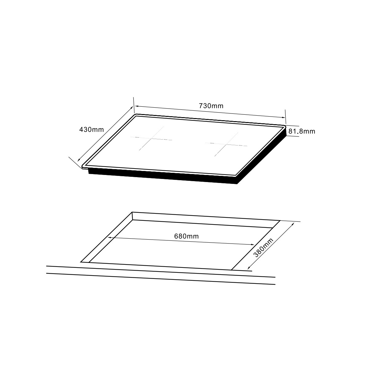 + Vùng nấu từ bên phải: Ø200 mm – 1,8/2,0 kW (gia nhiệt nhanh)