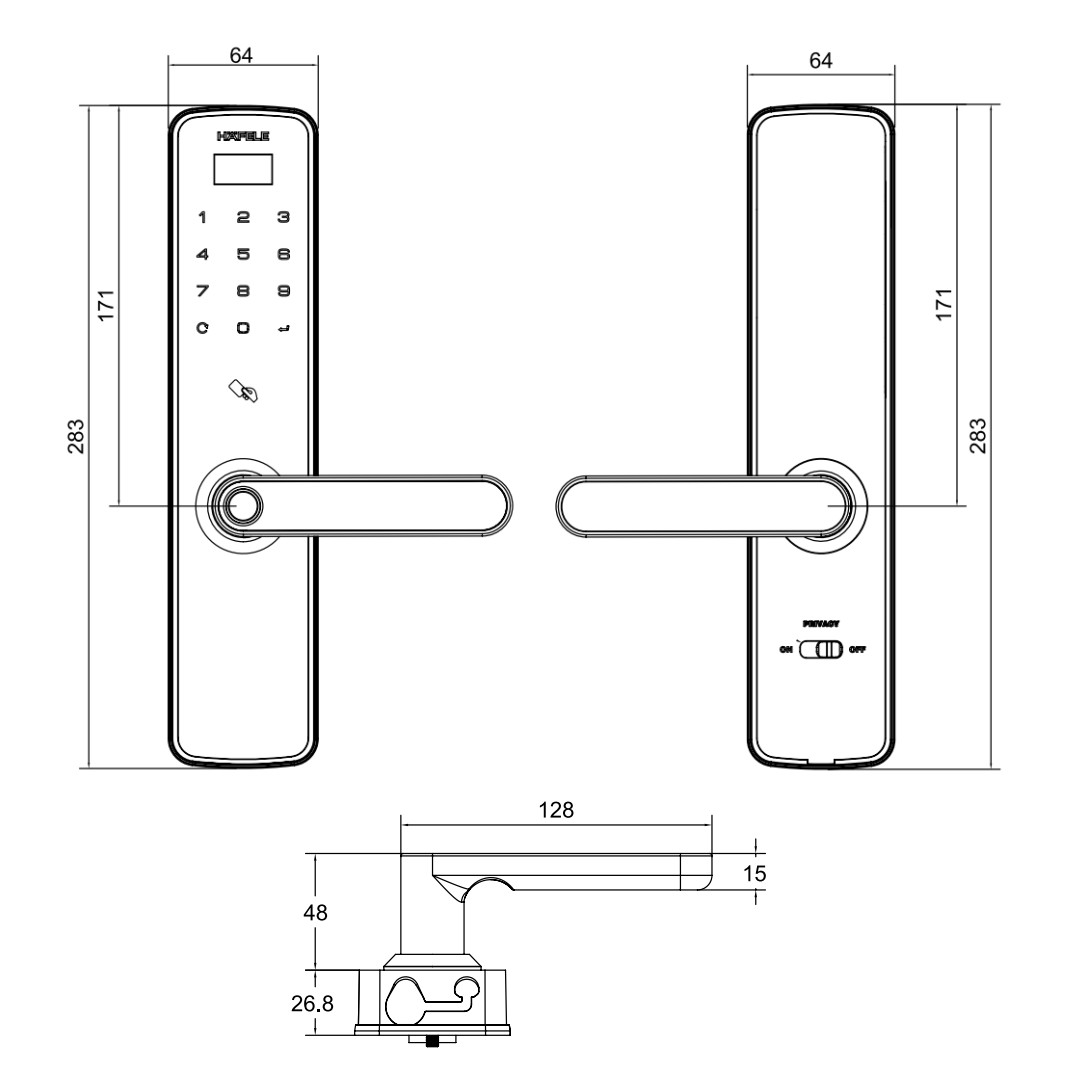 Khoá điện tử Hafele PP9100 912.20.697 (mã số, thẻ từ, chìa cơ, vân tay, Face ID, kết nối App)
