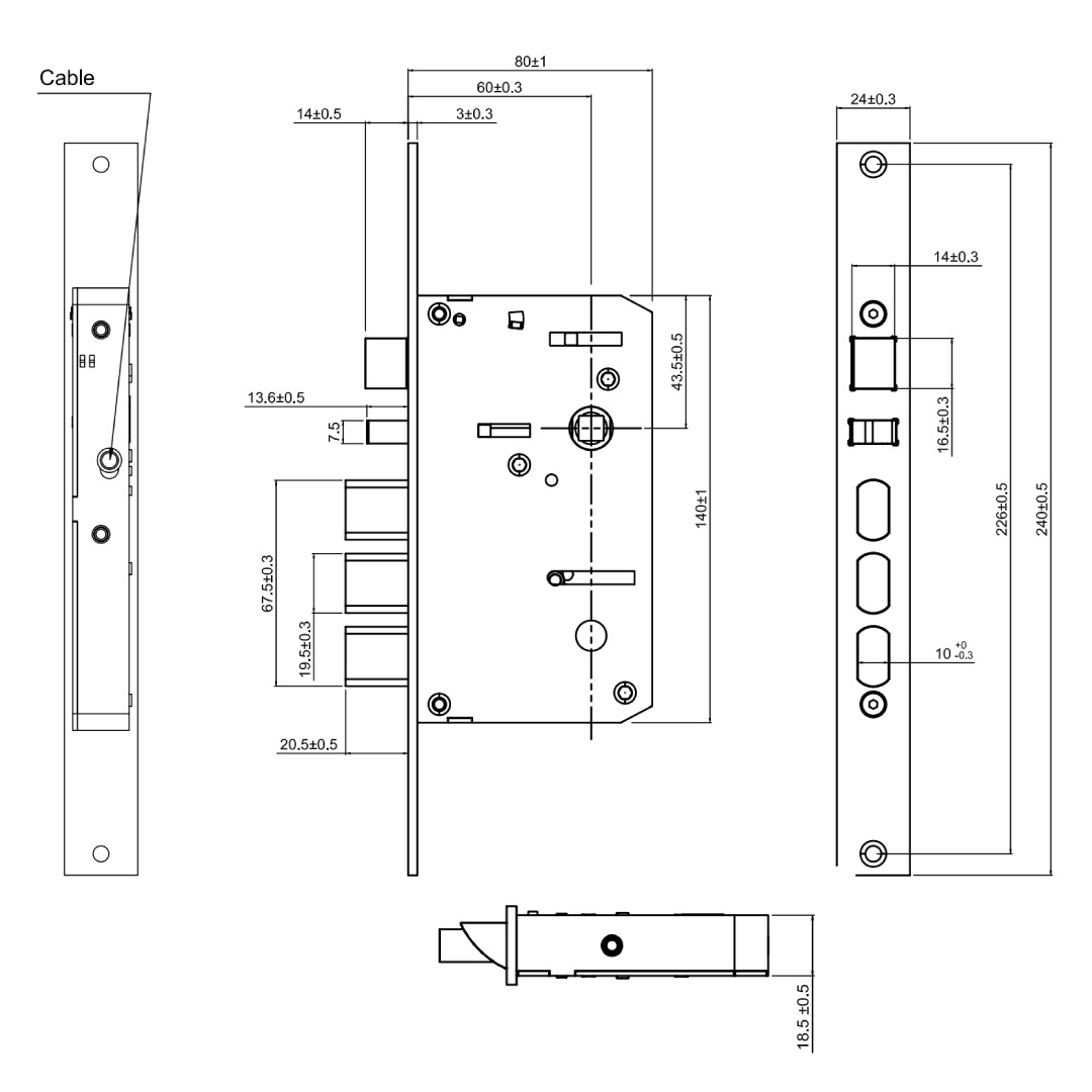 Kích thước mặt ngoài (RxCxD): 64 x 283 x 26.8 mm (WxHxD)