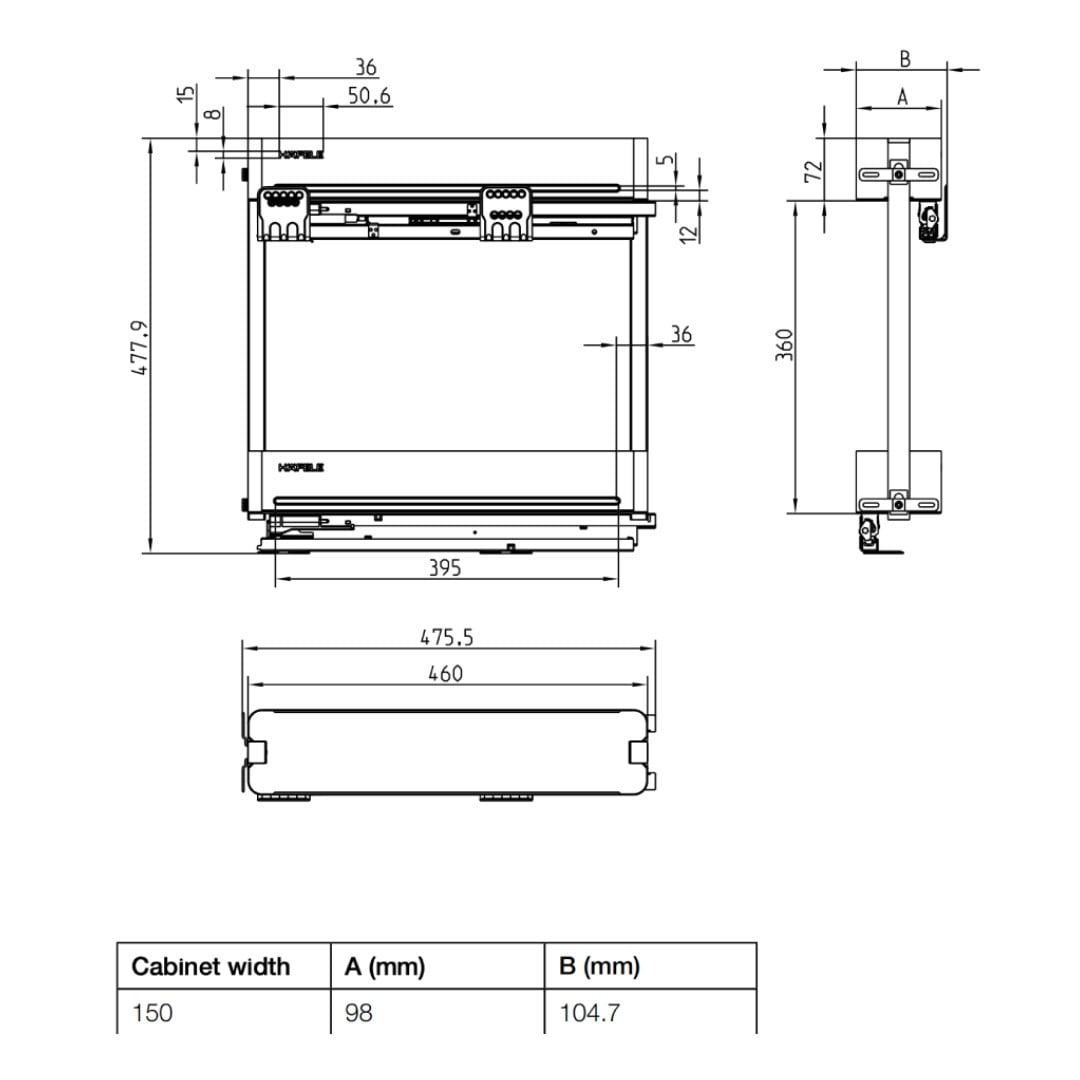 Rổ gia vị chai lọ Hafele baseAGENT 150mm 545.14.321